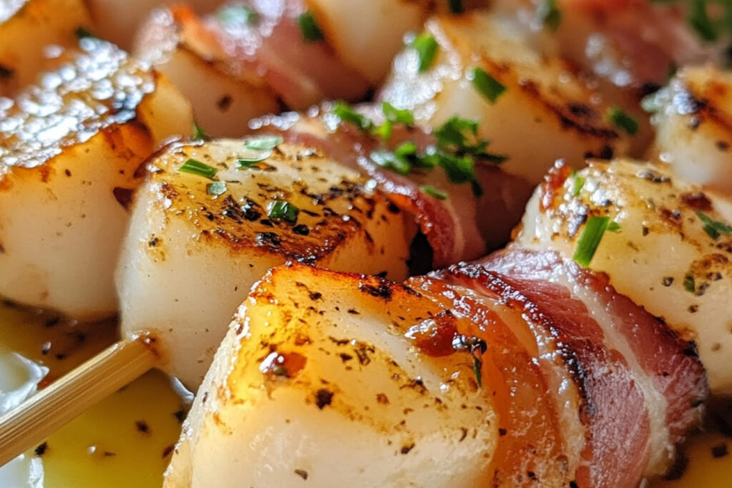 Bacon-wrapped scallops pair nicely with a fresh salad, roasted vegetables, or a light pasta dish for a balanced meal.