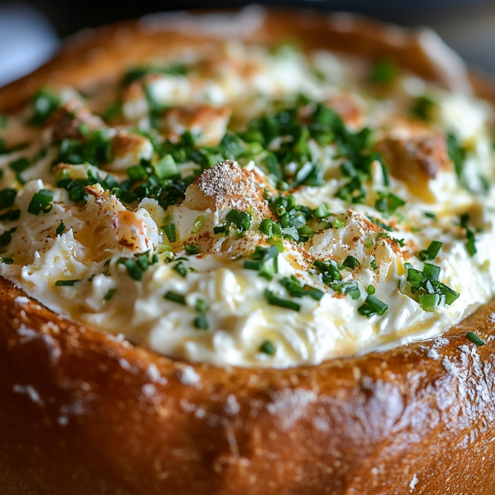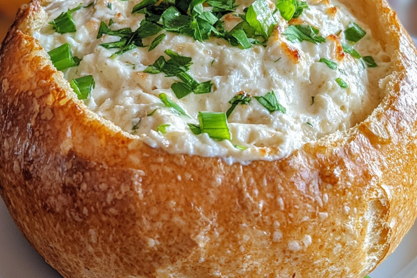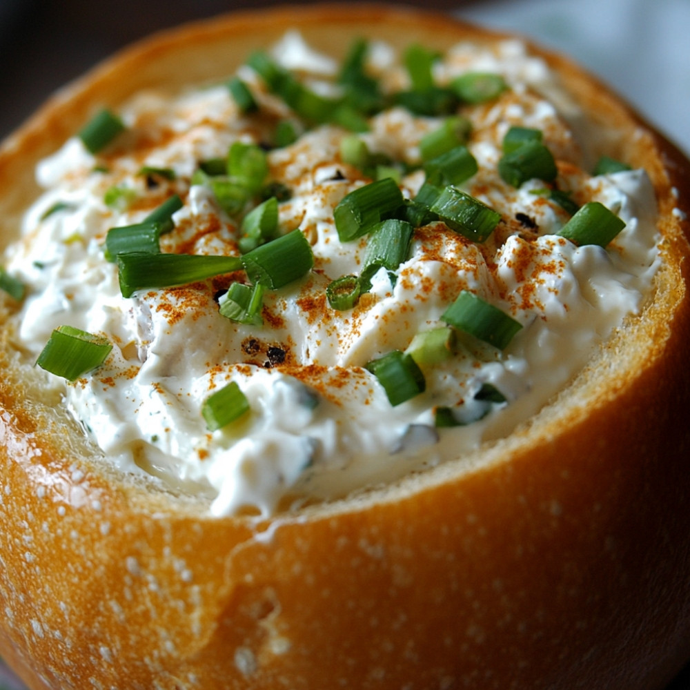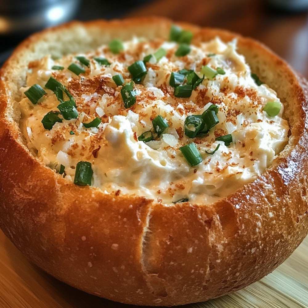 Crab dip served in a bread bowl is a delightful appetizer that combines creamy richness with the savory taste of crab. This dish is perfect for gatherings, parties, or cozy nights in. The warm, gooey dip pairs wonderfully with the soft bread, making it a favorite among seafood lovers.