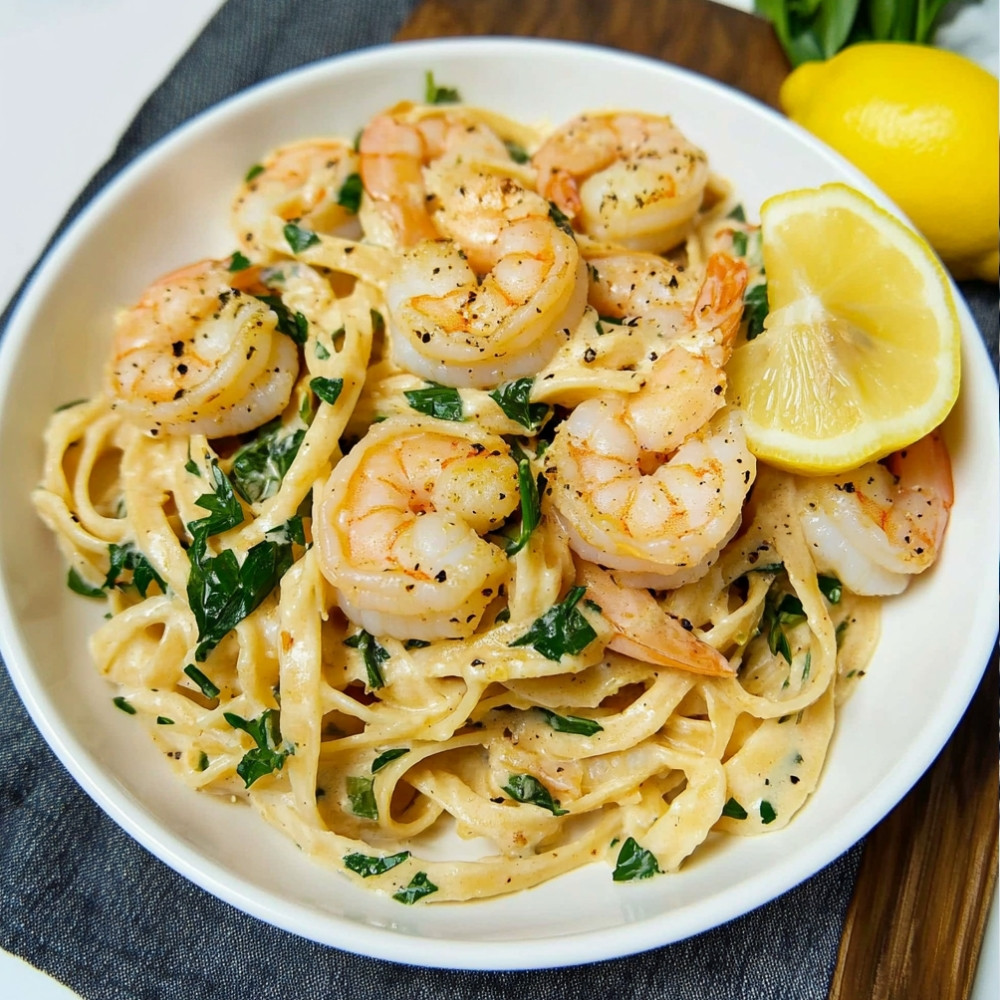 Return the cooked shrimp to the skillet, tossing to coat them in the creamy lemon Parmesan sauce. Cook for an additional 1-2 minutes to heat through.