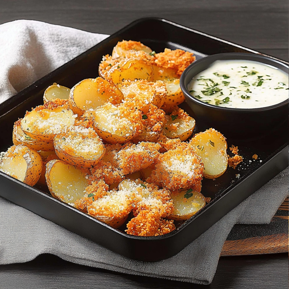 The Parmesan-crusted potatoes offer a delightful combination of flavors and textures, making them a perfect appetizer for any occasion. Their crispy exterior and soft interior provide a satisfying bite that pairs well with a variety of dips and sides. Enjoy this simple yet elegant dish as a crowd-pleaser at your next gathering.