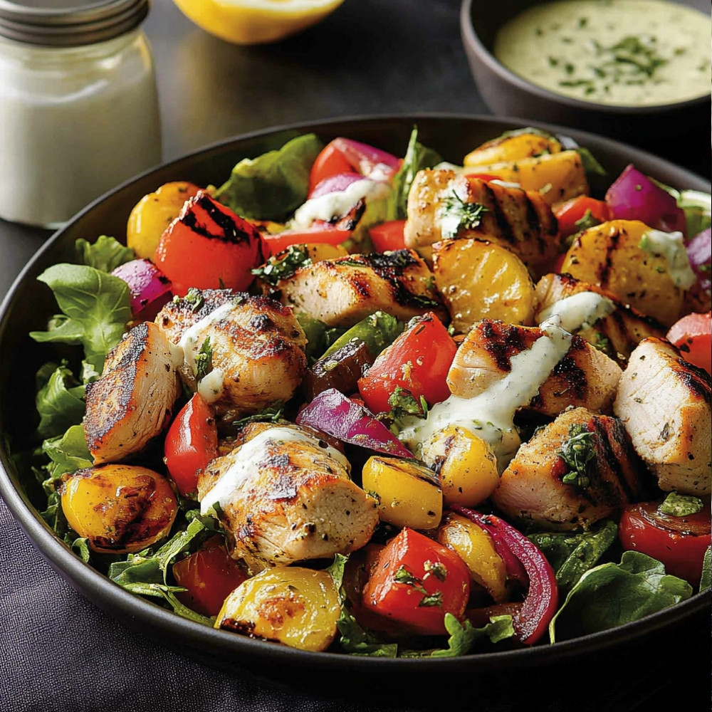 The grilled chicken and vegetable salad is a delightful dish that combines fresh ingredients and strong flavors, making it a perfect option for a quick meal. Its versatility allows for various customizations, and it serves as a healthy choice for lunch or dinner, easily bringing vibrant colors and nutrition to your table.