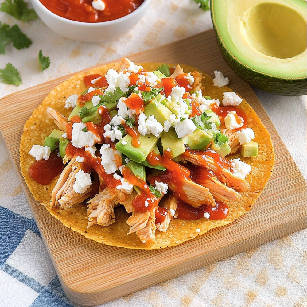 Serve immediately while the tostadas are crisp and the chicken is warm. Enjoy as a delightful main dish.