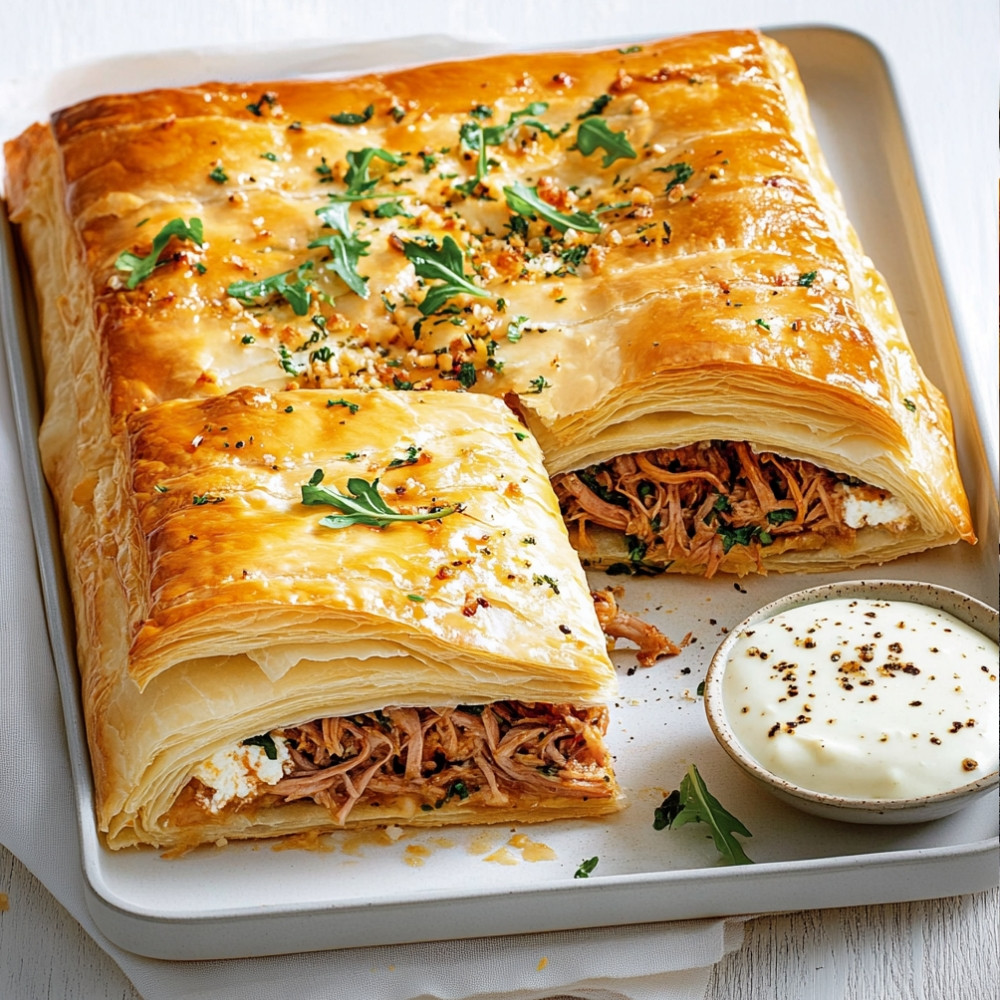 This shredded pork puff pastry dish is not only quick to prepare but also incredibly delicious. With its flaky texture and succulent filling, it makes for a satisfying main course that can easily impress guests or satisfy a family meal. The combination of simple ingredients allows for versatility in flavors and presentations, ensuring that it can be tailored to your personal preferences.