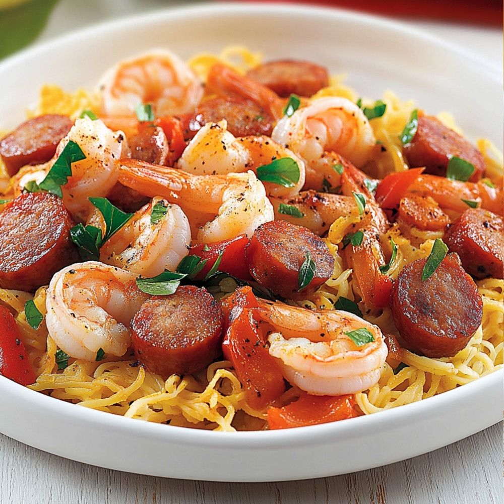 Combine different textures in your dish for a more enjoyable eating experience. The tenderness of shrimp pairs well with the slight chewiness of sausages, adding depth to your meal.