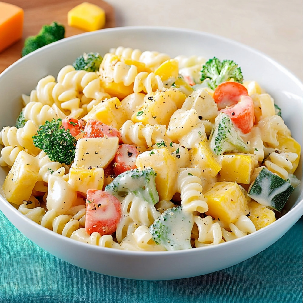 This creamy pasta salad is not only easy to make but also a versatile option that can be enjoyed as a main dish or a side. The combination of fresh vegetables and cheddar cheese adds a delicious twist, making it a favorite among both kids and adults. Enjoy this hassle-free recipe whenever you need a quick and hearty meal!