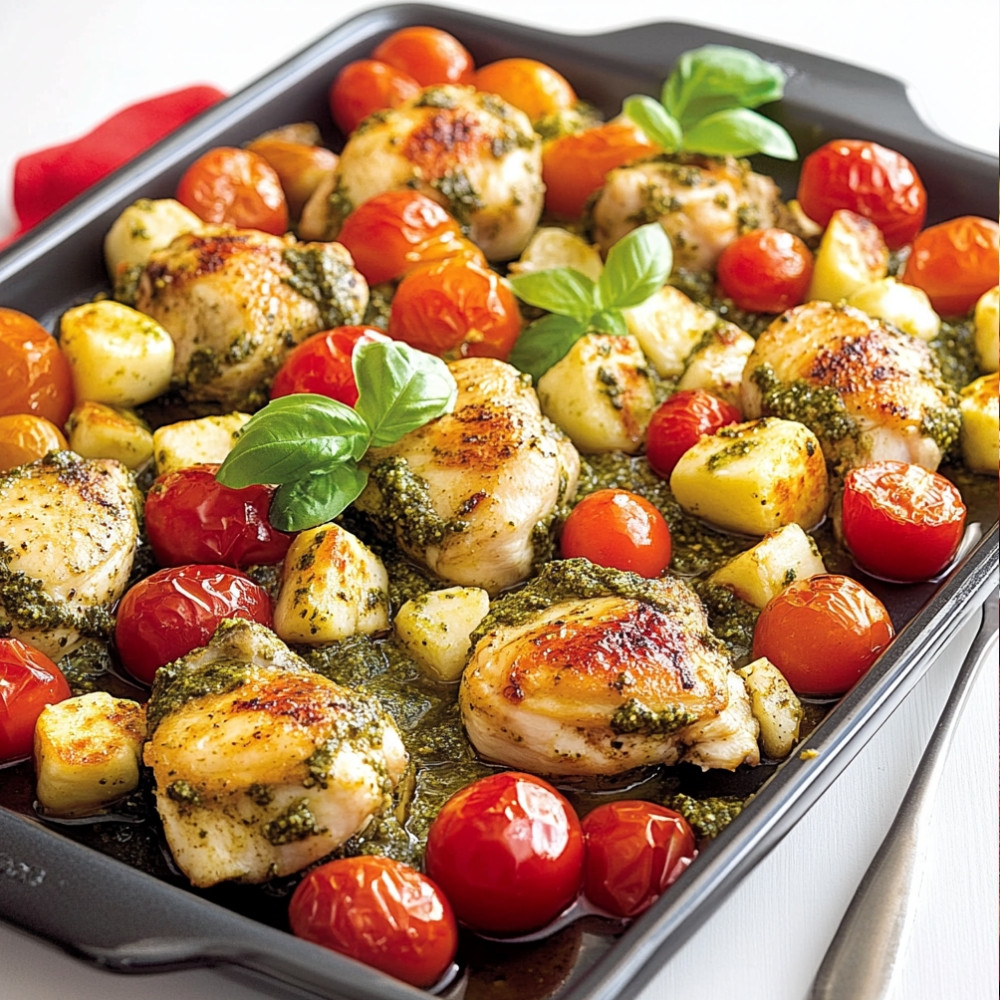 The Pesto Chicken Thighs with Tomatoes and Halloumi is a delightful dish that combines rich flavors and vibrant ingredients. Its simplicity makes it an accessible option for busy weeknights while still providing a gourmet experience. This recipe highlights the versatility of chicken thighs and the complementary nature of pesto, tomatoes, and halloumi, ensuring a satisfying meal that pleases the palate.