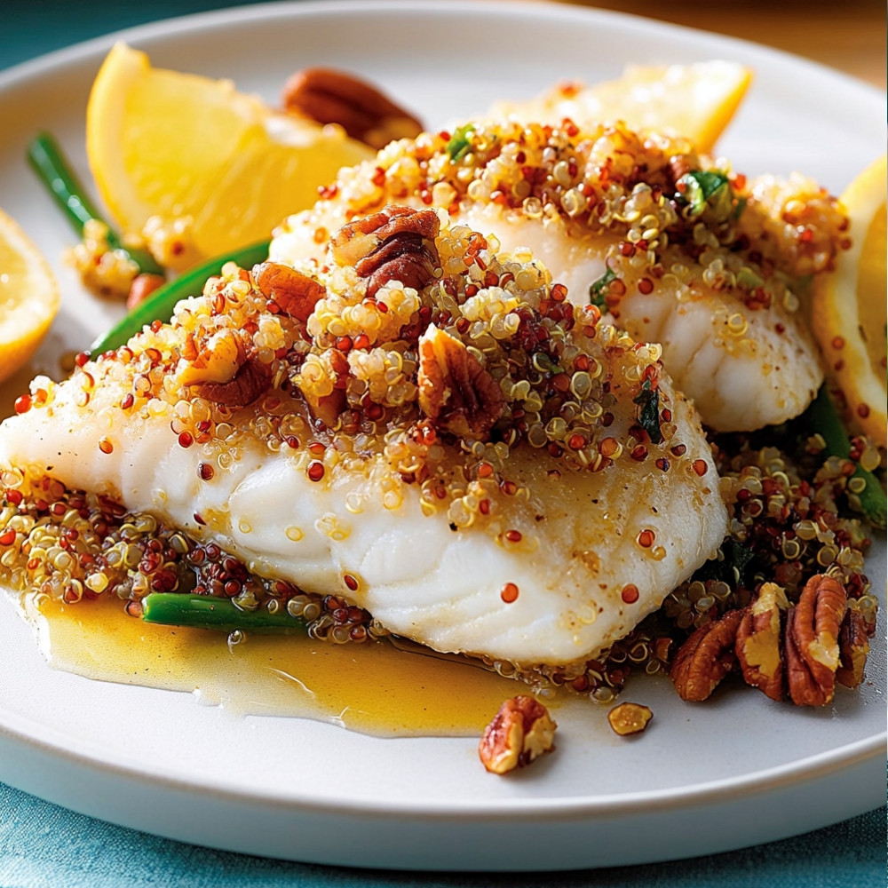 Discover a delightful and quick recipe for White Fish in Quinoa, Maple, and Pecan Crust, prepared in an air fryer. This dish brings together the nutritional richness of quinoa, the natural sweetness of maple syrup, and the crunch of pecans, making it a perfect choice for a healthy yet satisfying meal. In just a few simple steps, you can enjoy a gourmet-style dish that is both easy to make and bursting with flavor.