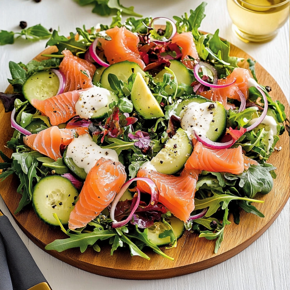 The smoked salmon salad is not only visually appealing but also offers an explosion of flavors and textures that make it a perfect dish for any occasion. Quick to prepare and rich in nutrients, this salad can serve as a light main dish or a refreshing side dish. Ideal for sharing, it features a combination of fresh ingredients that complement the smoky richness of the salmon.