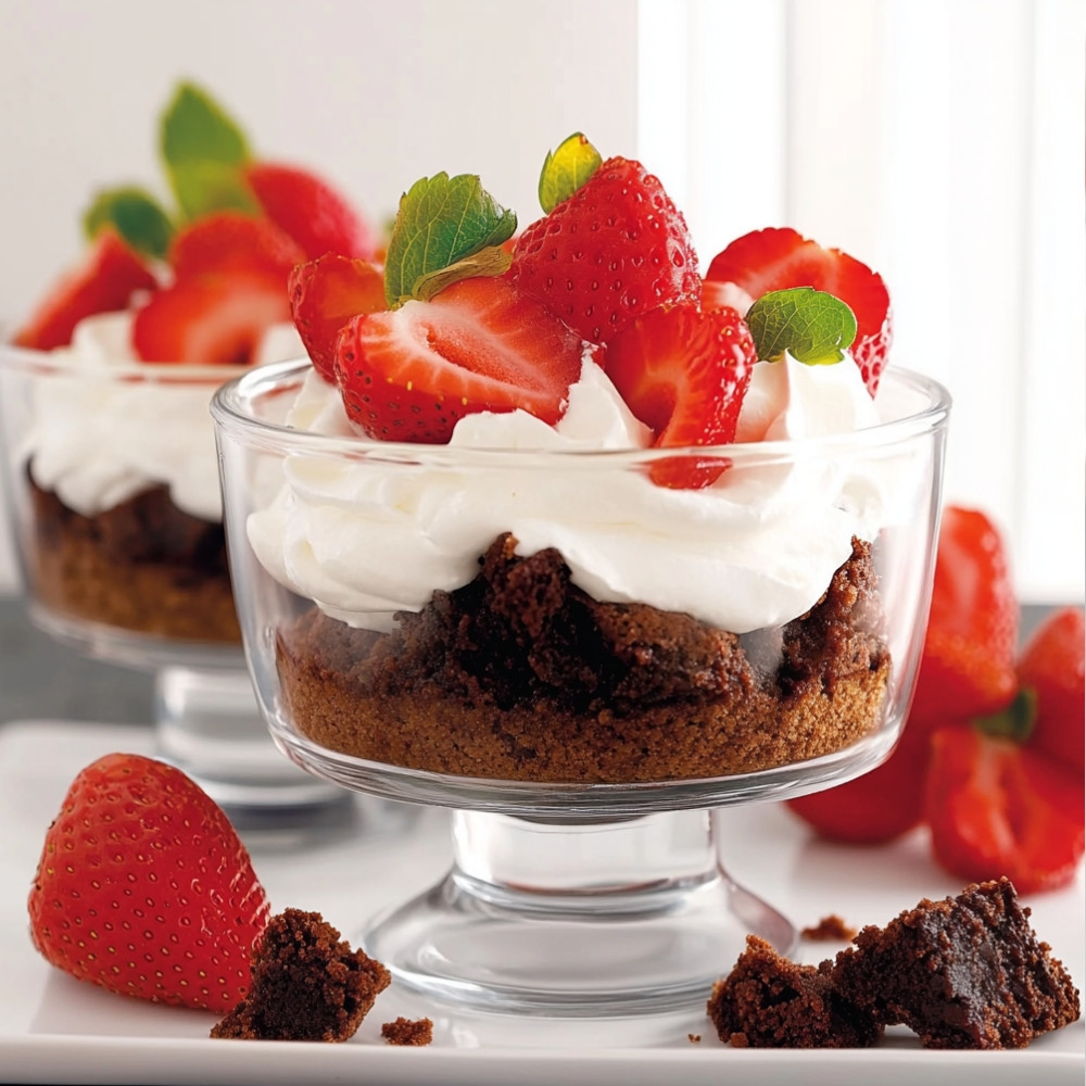 This simple yet delectable dessert is not only easy to prepare but also offers a beautiful presentation. With just five ingredients and minimal cooking time, you can create a show-stopping dish that’s perfect for any occasion. Enjoy the wonderful combination of fudgy brownies layered with fresh strawberries and fluffy whipped cream.