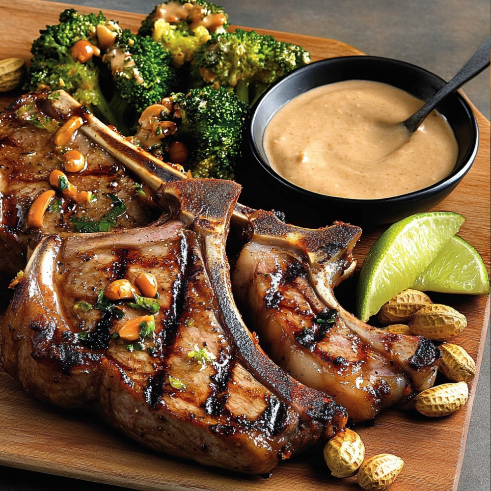 2. Serve the chops on plates and drizzle the peanut sauce over them.