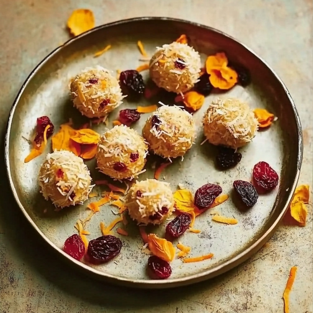 These coconut and dried fruit balls can be enjoyed on their own or paired with a selection of nuts for a nutritious snack platter.