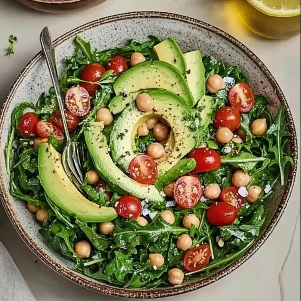 This delicious salad brings together the peppery taste of arugula, the creamy texture of avocado, and the hearty nature of chickpeas. It’s not only a feast for the taste buds but also a vibrant addition to any meal. Perfect as a light lunch or as a side dish for dinner, this salad is packed with nutrients, making it both healthy and satisfying.