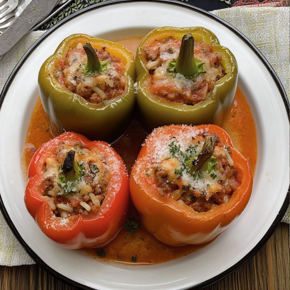 For meat enthusiasts, load your peppers with a combination of ground beef, sausage, and pepperoni. Top with mozzarella for a hearty, satisfying dish.