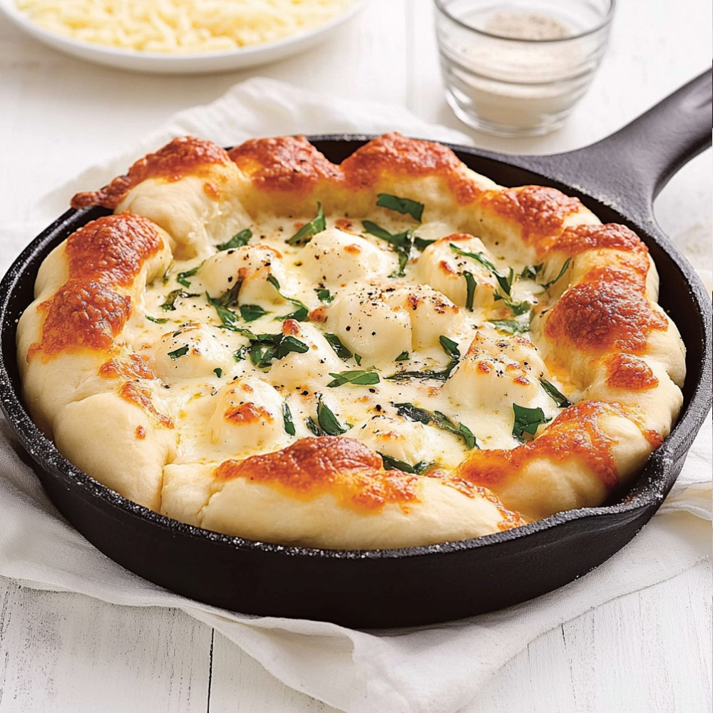 Pizza Alfredo au Brie dans un Poêlon is a delicious and unique twist on the classic pizza. This dish combines the creamy goodness of Alfredo sauce with the rich and luxurious flavor of Brie cheese, all baked to perfection in a skillet. Ideal for a cozy dinner or a delightful gathering with friends, this recipe is sure to impress.