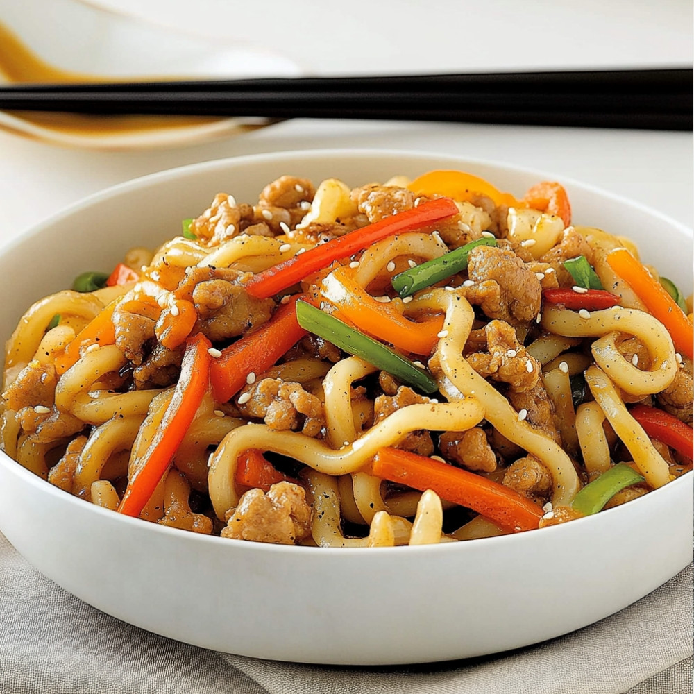 Yaki Udon, a popular Japanese dish, features thick wheat noodles that are stir-fried with a savory blend of vegetables and protein. This delightful recipe has a satisfying texture and delicious umami flavor, making it a favorite among Asian cuisine lovers. With its versatility, Yaki Udon can easily be customized with various ingredients based on personal tastes or dietary preferences.