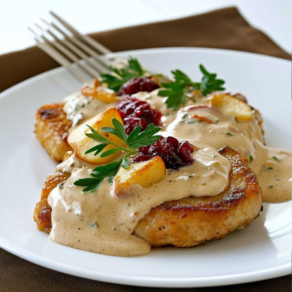 Pork chops with creamy apple cranberry sauce offer a delicious and festive twist to a classic dish. The combination of savory pork and a sweet-tart sauce makes this recipe a perfect choice for any dinner, especially during the fall and winter months. The creamy sauce, enriched with apples and cranberries, elevates the dish, making it an ideal centerpiece for family gatherings or special occasions.