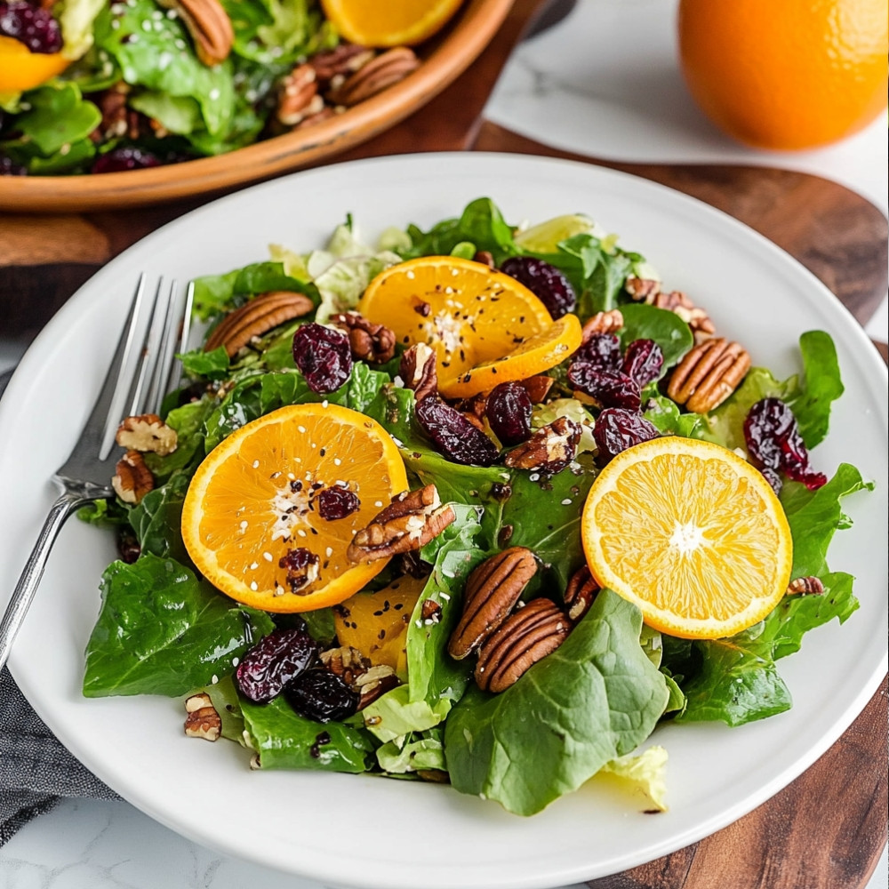 Mixed Green Salad with Oranges, Dried Cranberries, and Pecans is a delightful dish that combines vibrant flavors and textures. This salad is perfect for any occasion, whether it’s a casual family dinner or a festive gathering. The combination of fresh greens, sweet oranges, tart cranberries, and crunchy pecans creates a refreshing and satisfying dish that brightens up any meal.