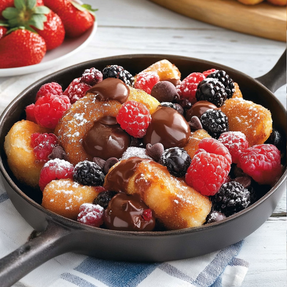 Indulgence meets creativity in the delightful recipe for a skillet of donuts with mixed fruits and chocolate. This dessert not only satisfies your sweet tooth but also offers a burst of flavors and textures that are sure to impress your family and friends. Whether enjoyed warm or at room temperature, these donuts make for a perfect treat for any occasion.