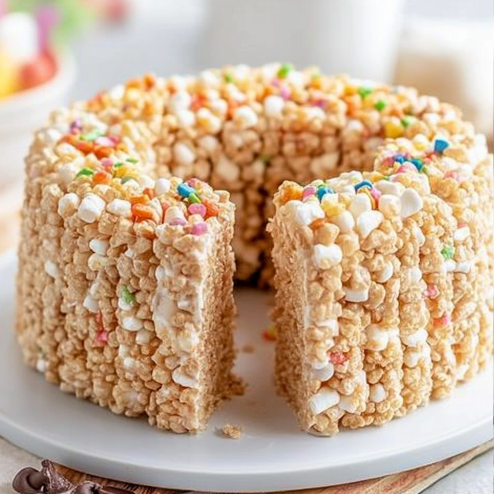 This rice crispy cake is perfect for parties, celebrations, or as a fun treat for kids.
