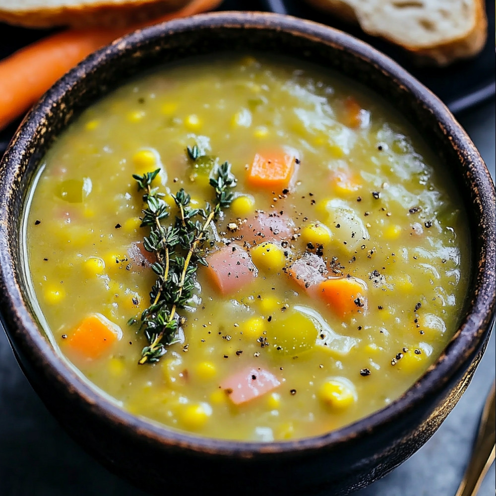 For a hearty variation, include diced ham or bacon. The smoky flavor pairs wonderfully with the earthiness of the split peas, creating a satisfying dish.