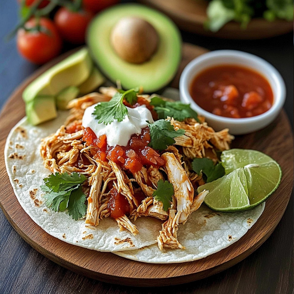 Use the pulled chicken as a filling for soft or hard shell tacos, topped with avocado, cilantro, and lime for a fresh flavor.