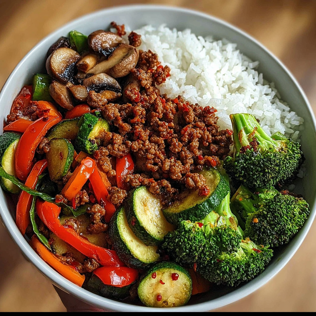 Keywords:Ground Beef, Stir Fry, Spicy, Quick Meal, Dinner