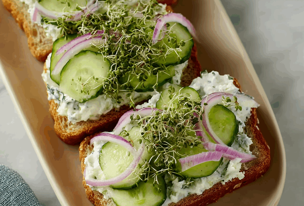 Step 1 Slice your cucumber very thinly. A mandoline works great for this. Toss the slices with a teaspoon of salt. Let them sit for 20 minutes. Step 2 Press the cucumber slices between paper towels. You want to remove all the extra water. This stops your sandwich from getting soggy. (My hard-learned tip: press firmly for a full minute!). Step 3 Mix the soft cream cheese and mayonnaise in a bowl. Stir in the fresh dill, chives, and spices. Taste it and add more pepper if you like. The spread should be smooth and herby. Step 4 Spread the herby cream cheese on your bread slices. Layer the dried cucumber slices on top. Close the sandwich and cut off the crusts if you wish. Slice into triangles or fingers for serving. What’s the key to a non-soggy cucumber sandwich? Share below! Cook Time: 25 minutes Total Time: 25 minutes Yield: 4-6 servings Category: Lunch, AppetizerThree Tasty Twists to Try