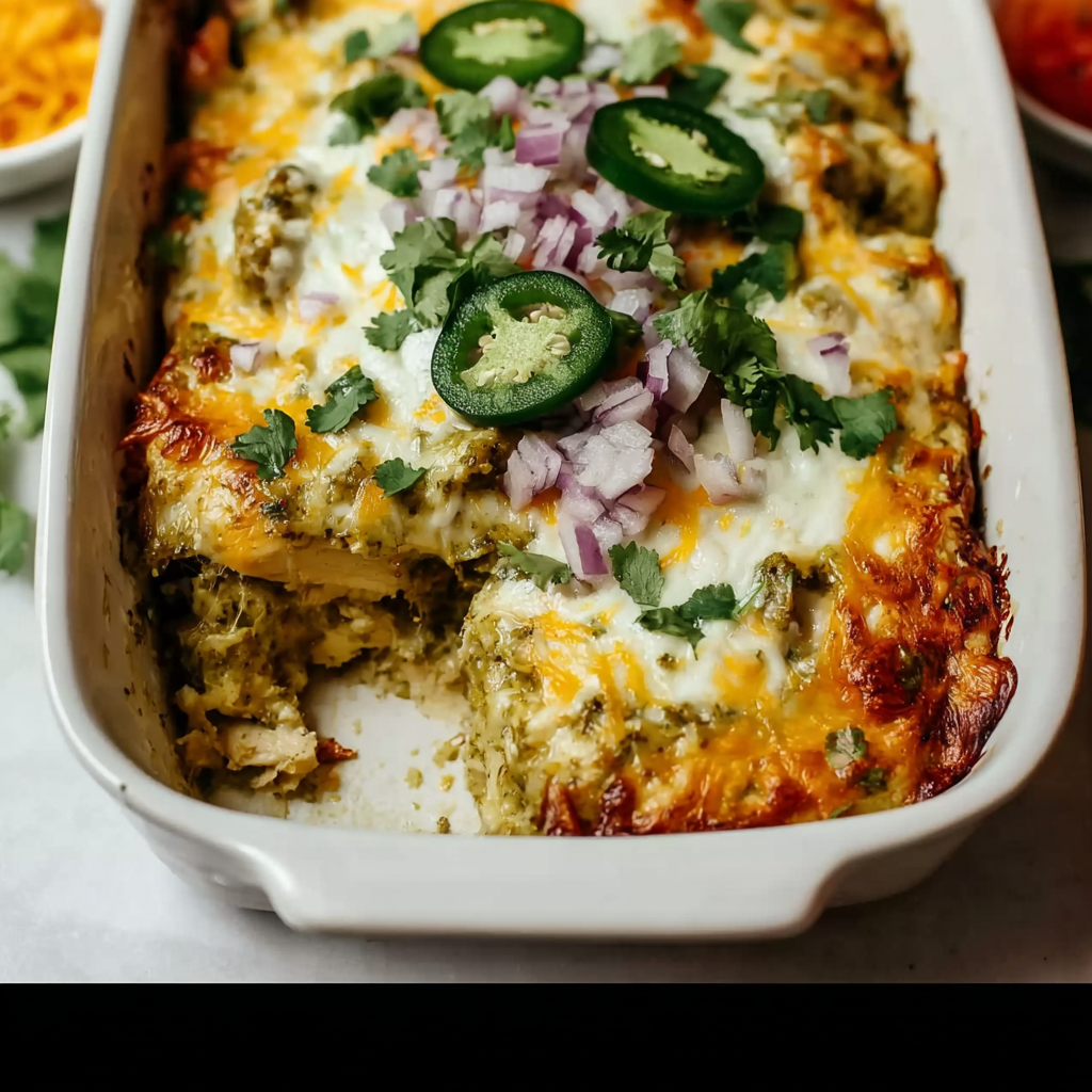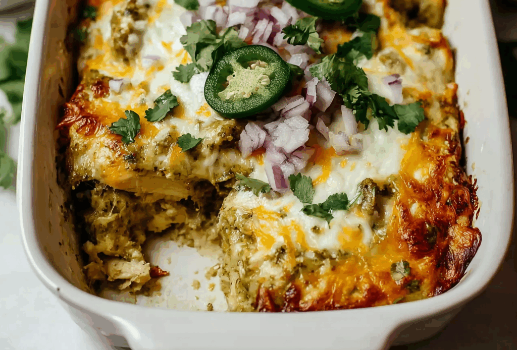 A creamy, cheesy, and flavorful casserole with tender shredded chicken and salsa verde, layered with corn tortillas.